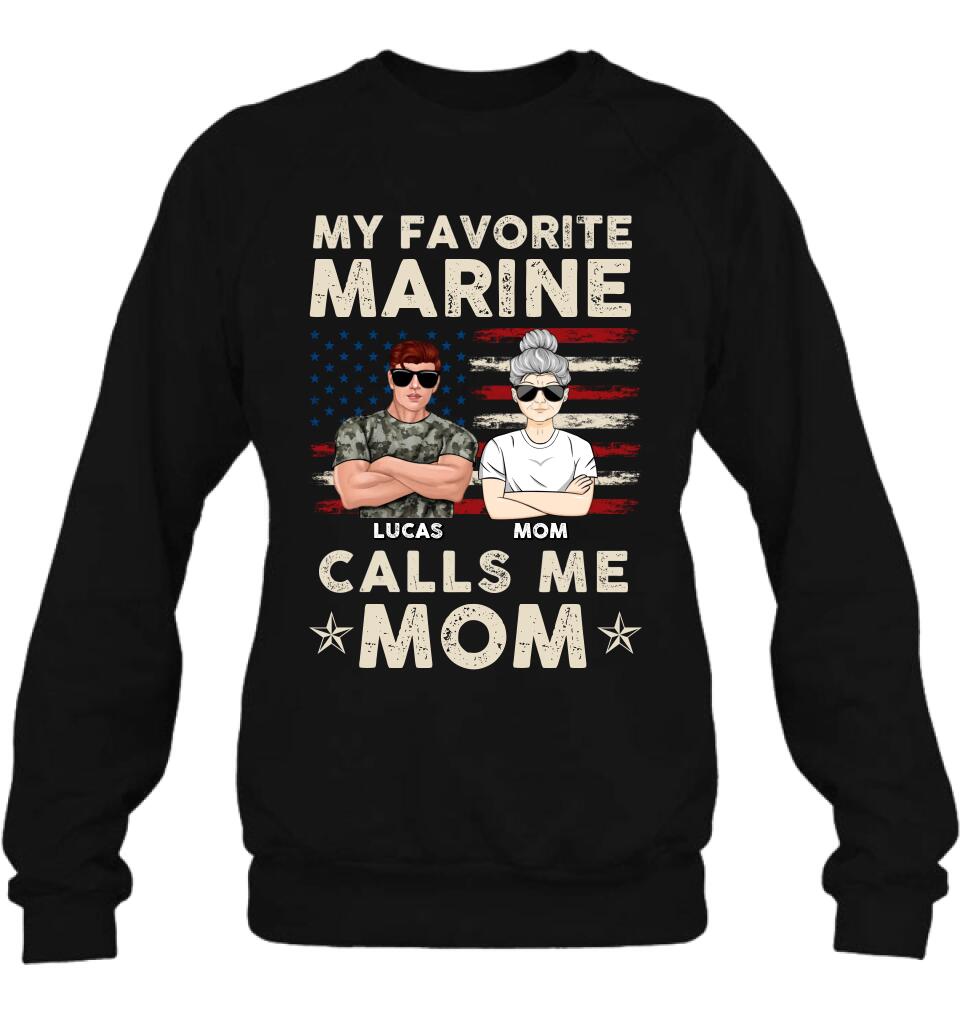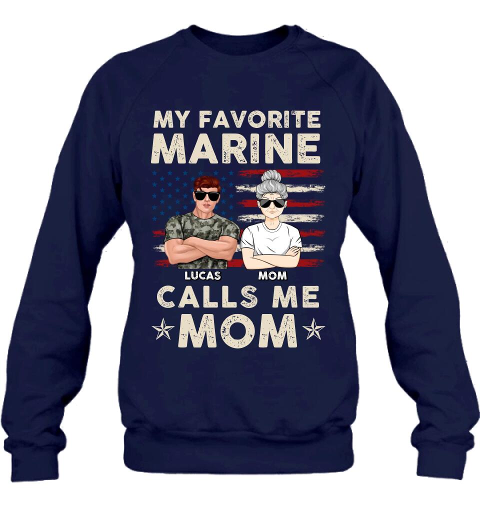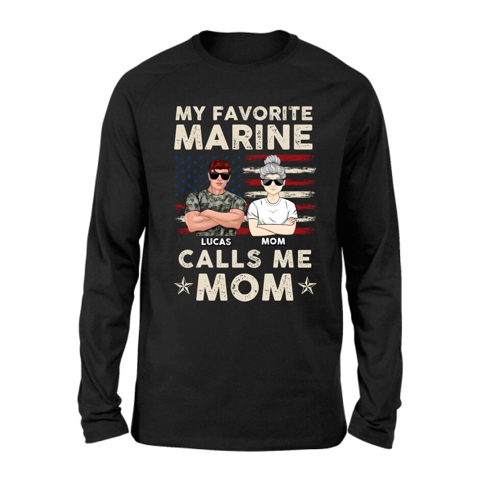 Custom Personalized Veteran Mom T-Shirt/Long Sleeve/Sweatshirt/Hoodie - Mother's Day Gift Idea For Veteran's Mom - My Favorite Marine Calls Me Mom