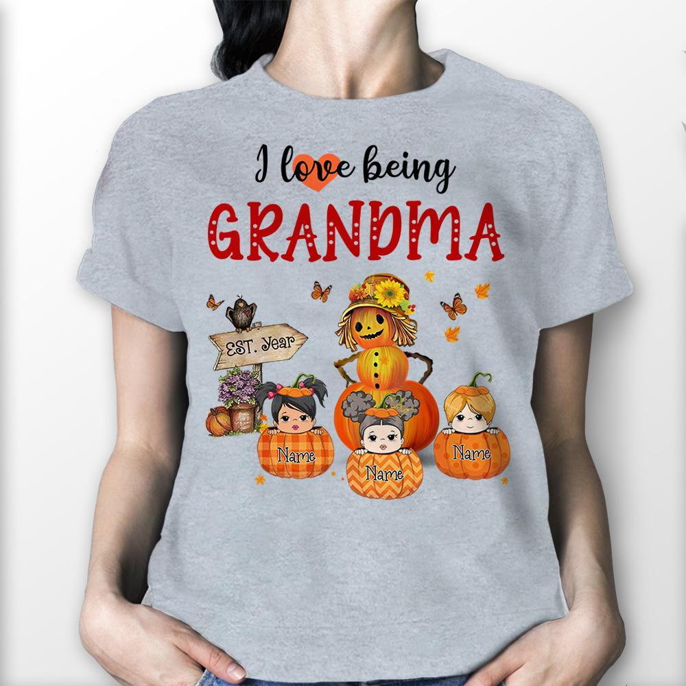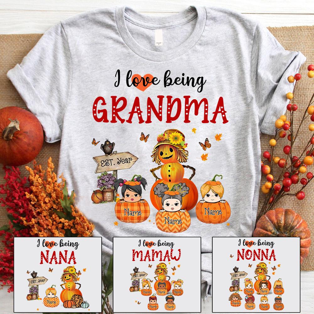 I Love Being Grandma Little Pumpkins Autumn Shirt, Grandma Nana Halloween Shirt, Custom Grandma With Grandkids Name Shirt
