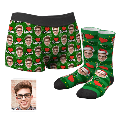 Men's Lover Custom Face Boxer Shorts And Socks Set