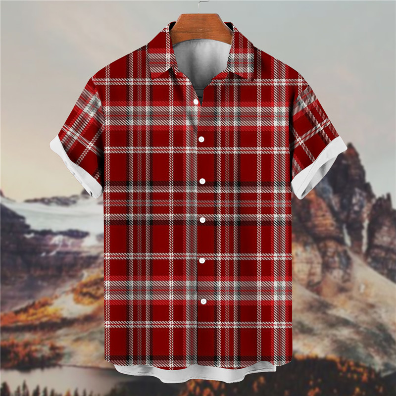 Men's Shirt Plaid Turndown Red Gray 3D Print Christmas Street Short Sleeves Button-Down Print Clothing Apparel Fashion Designer Casual Breathable / Summer / Spring / Summer
