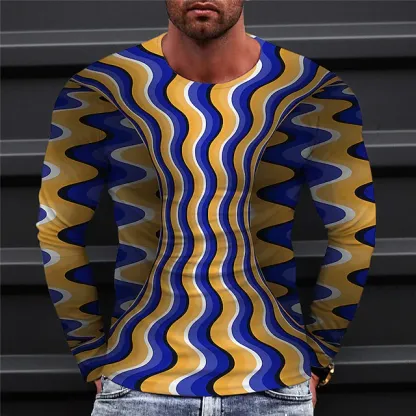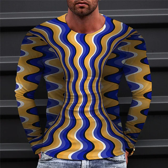 Men's T shirt Tee Abstract Graphic Prints Crew Neck Blue Purple Yellow Red 3D Print Outdoor Street Long Sleeve Print Clothing Apparel Basic Sports Designer Casual