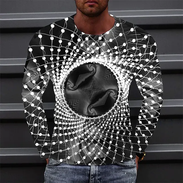 Men's T shirt Tee Optical Illusion Graphic Prints Crew Neck Green Light Green Fuchsia Gray 3D Print Outdoor Street Long Sleeve Print Clothing Apparel Basic Sports Designer Casual