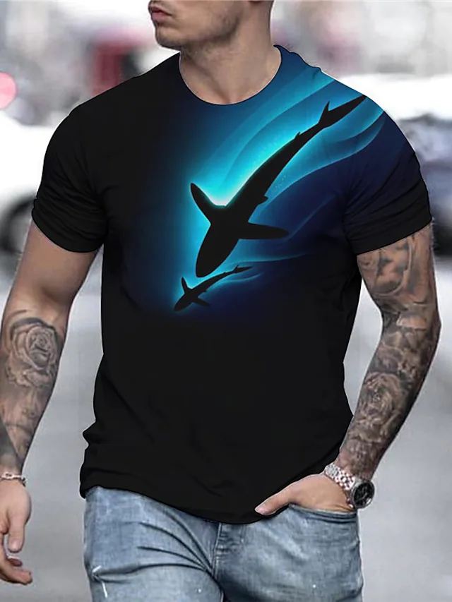 Men's T shirt Tee Shirt Tee Animal Shark Graphic Prints Round Neck Black 3D Print Daily Holiday Short Sleeve Print Clothing Apparel Designer Casual Big and Tall / Summer / Summer