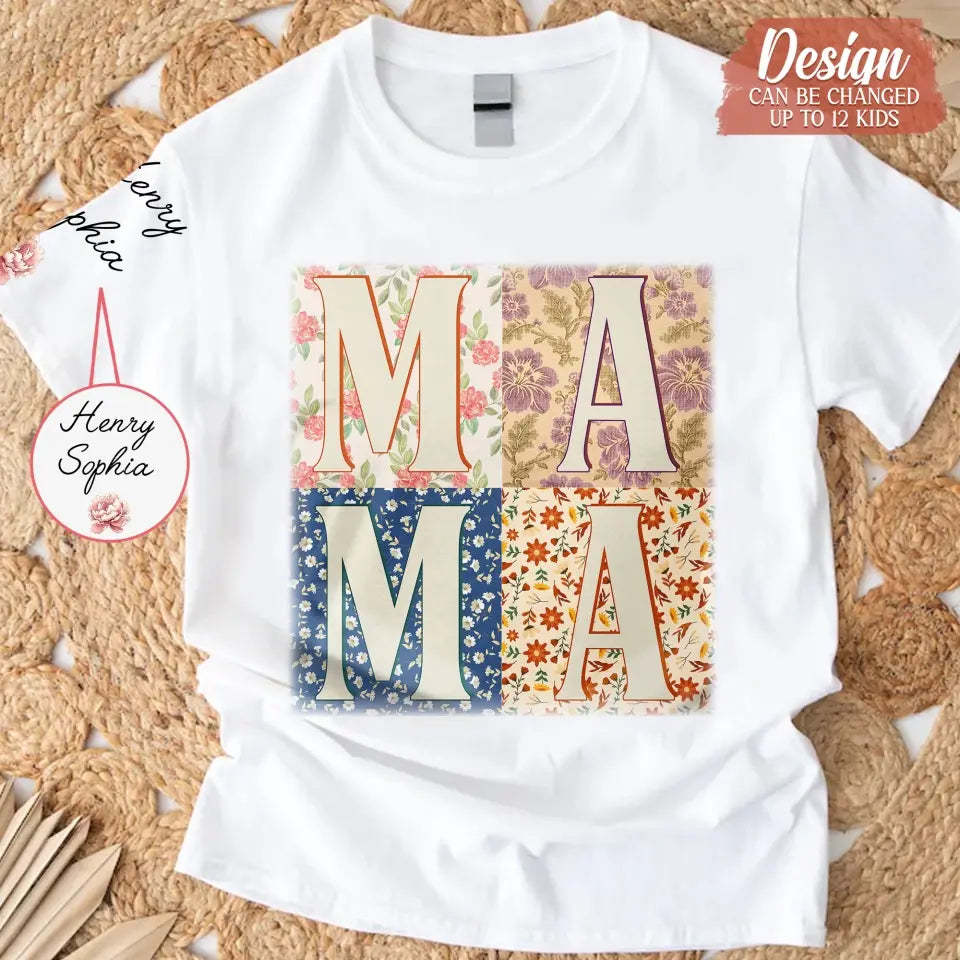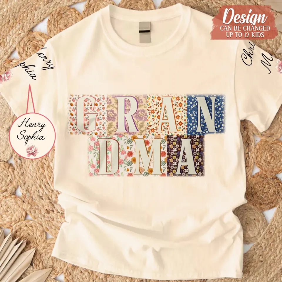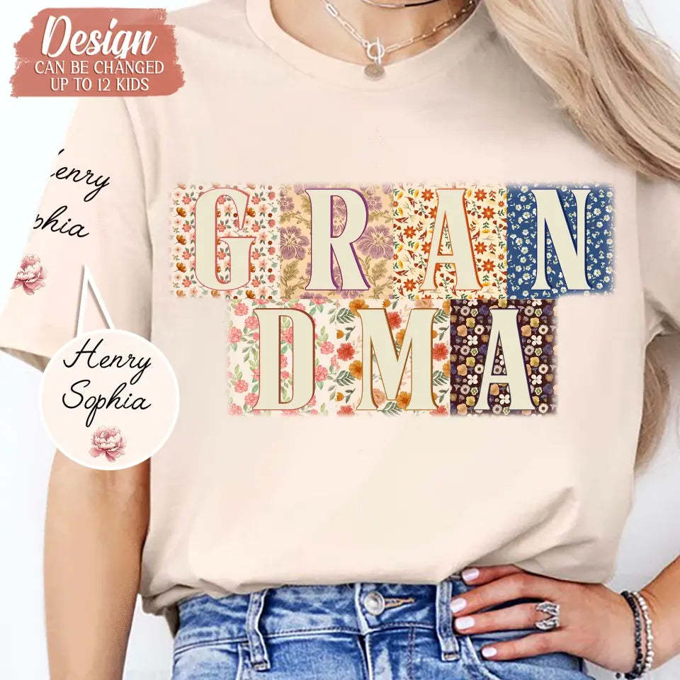 Custom Personalized Retro Boho Grandma T-Shirt- Upto 8 Kids - Mother's Day Gift Idea For Grandma/ Mom