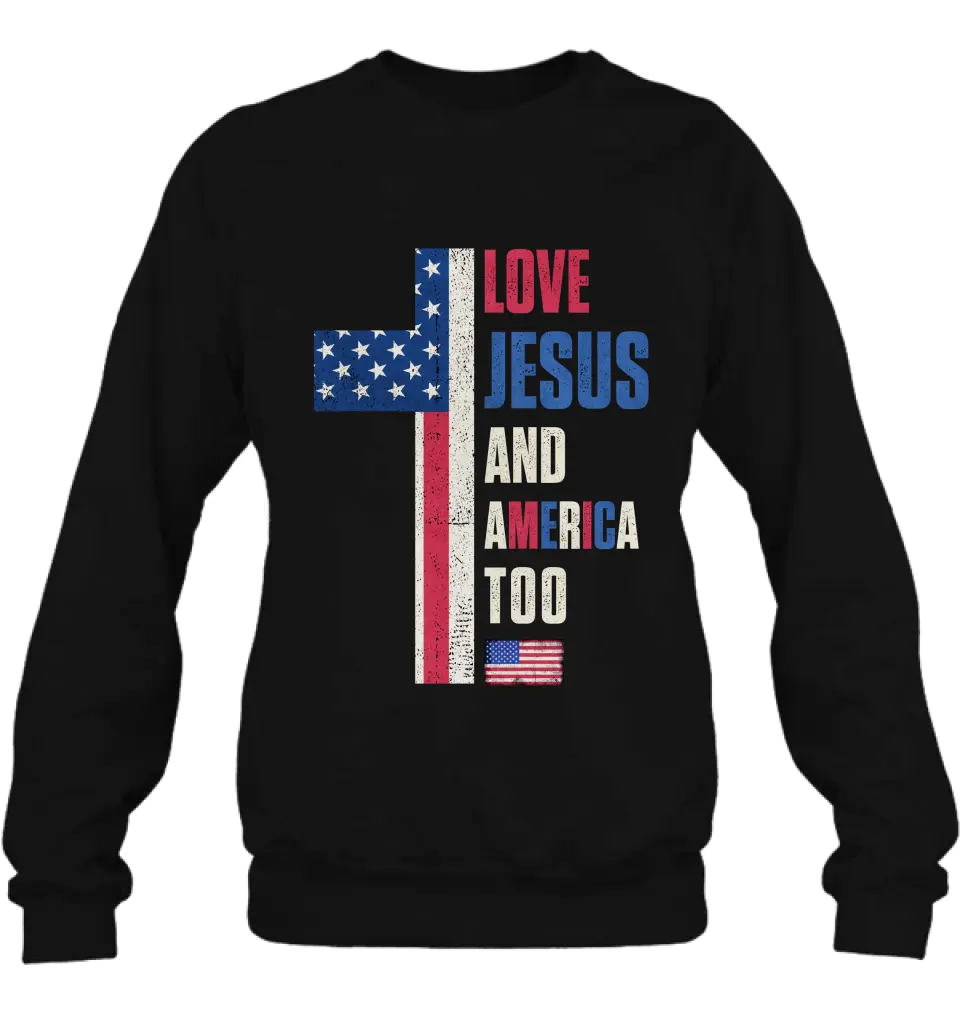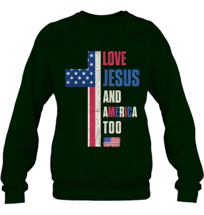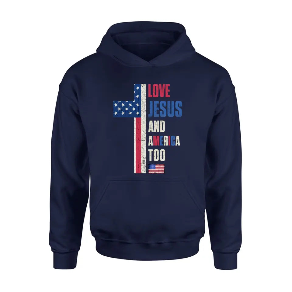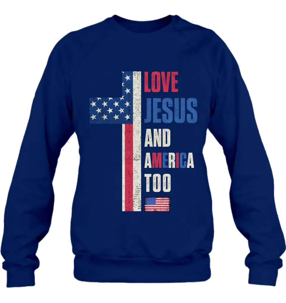 Love Jesus and America Too Unisex T-shirt/ Long Sleeve/ Sweatshirt/ Hoodie - Gift Idea For 4th Of July/ Friend/ Birthday