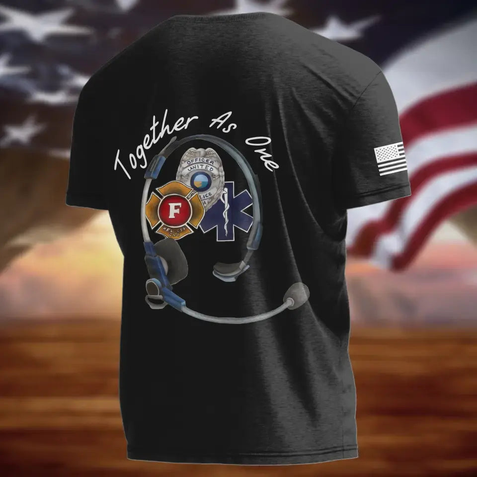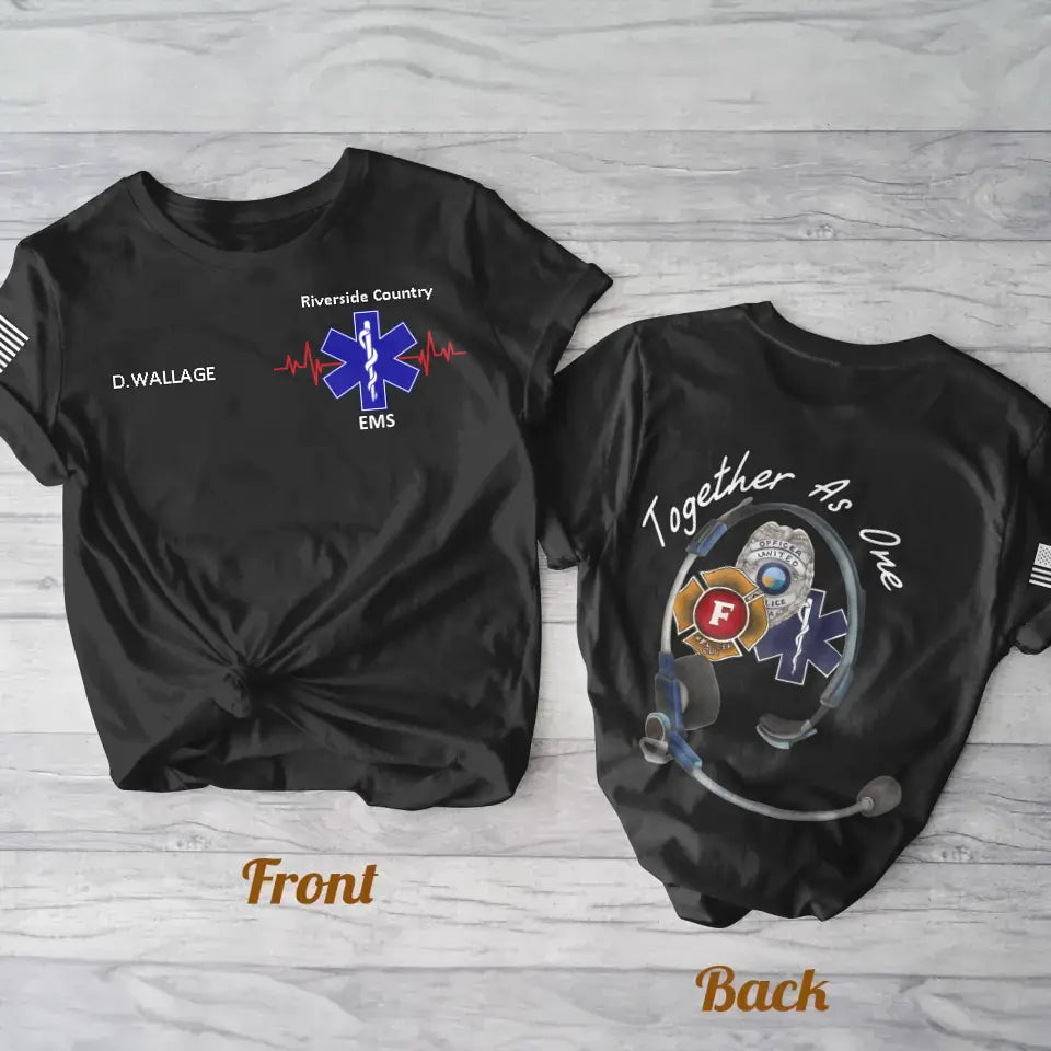 Custom Personalized EMS/ EMT/ Paramedic/ Firefighter/ Police AOP T-shirt - Gift Idea For Paramedic/ Firefighter/ Police - Together As One