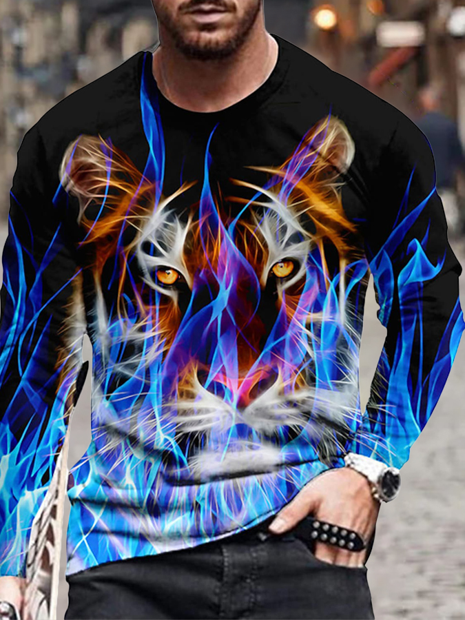 Men's Unisex T shirt Tee Tiger Graphic Prints Crew Neck Blue 3D Print Daily Holiday Long Sleeve Print Clothing Apparel Designer Casual Big and Tall