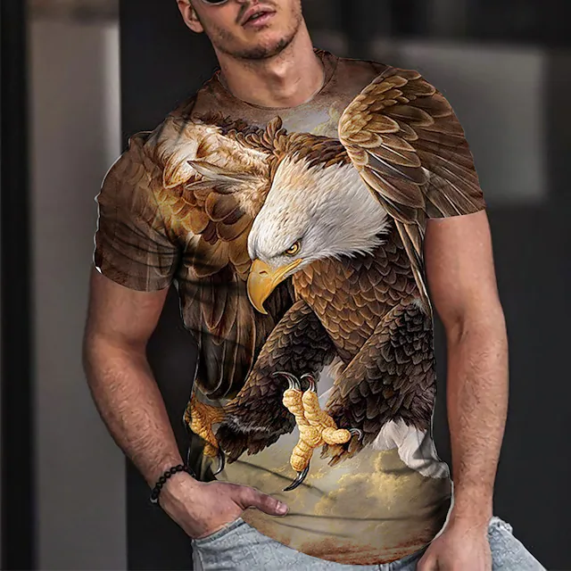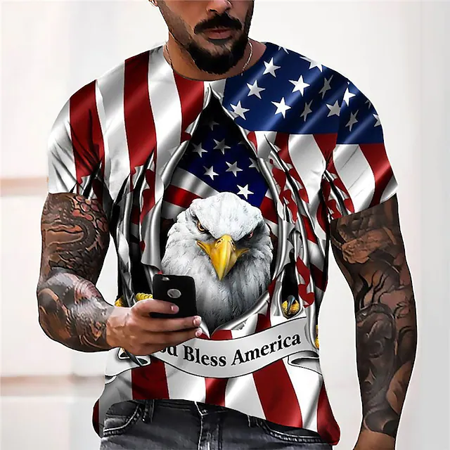 Men's Unisex T shirt Tee Graphic Prints Eagle National Flag Crew Neck Green Blue Yellow Red 3D Print Outdoor Street Short Sleeve Print Clothing Apparel Sports Designer Casual Big and Tall / Summer