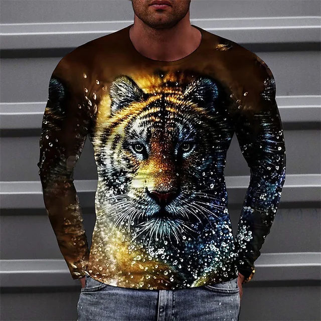 Men's T shirt Tee Tiger Graphic Prints Crew Neck Green Blue Purple Yellow Gray 3D Print Outdoor Street Long Sleeve Print Clothing Apparel Basic Sports Designer Casual