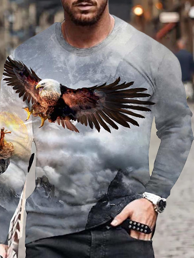 Men's Unisex T shirt Tee Graphic Prints Eagle Crew Neck Gray 3D Print Daily Holiday Long Sleeve Print Clothing Apparel Designer Casual Big and Tall
