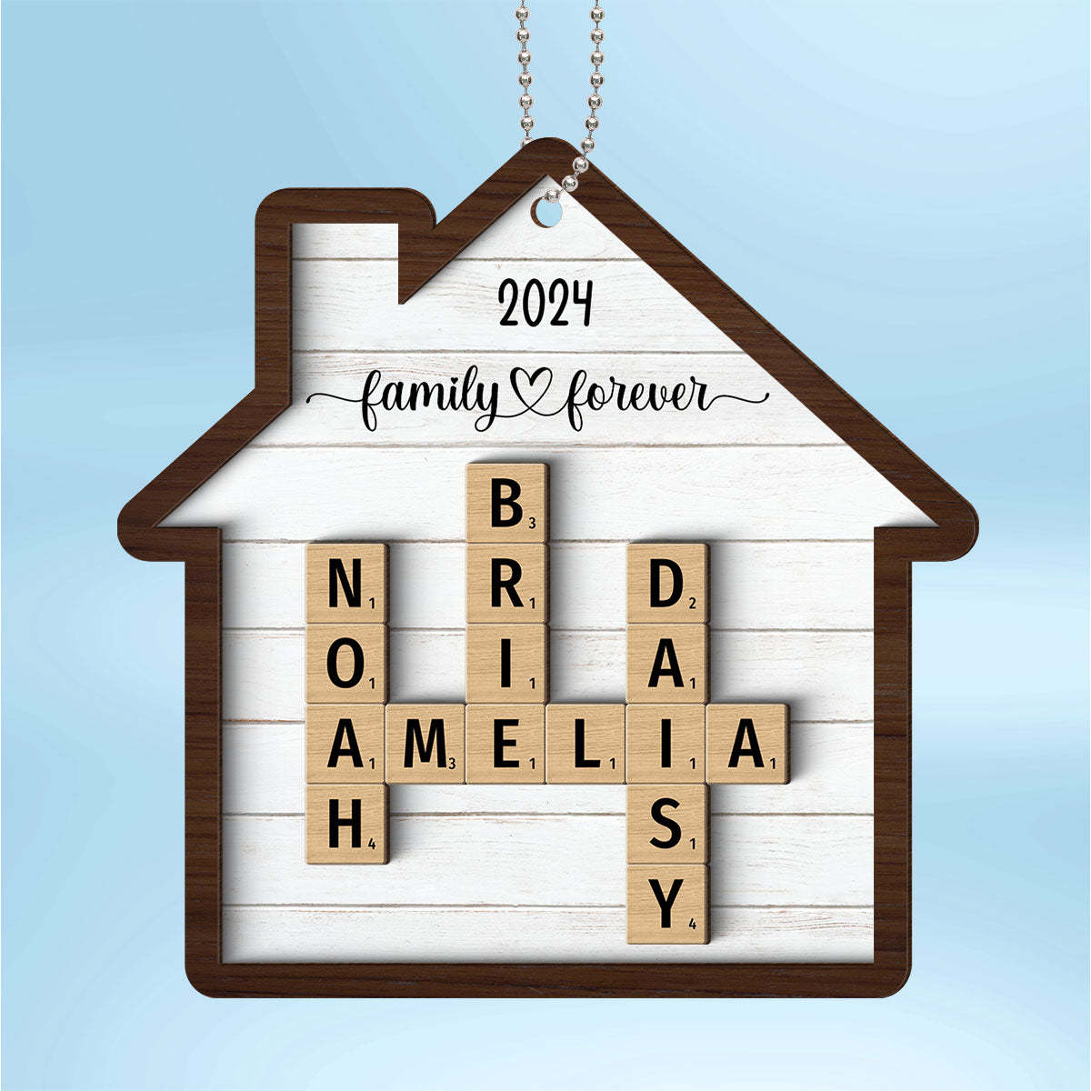 Family Crossword Puzzle Art Personalized House Shaped 2-Layer Wooden Ornament