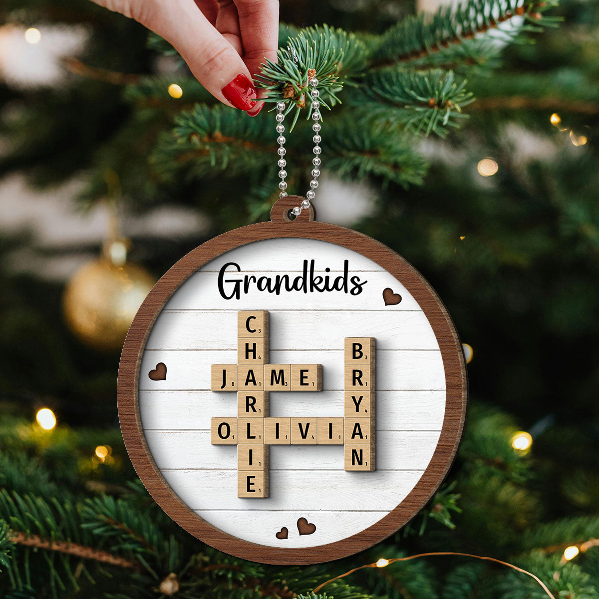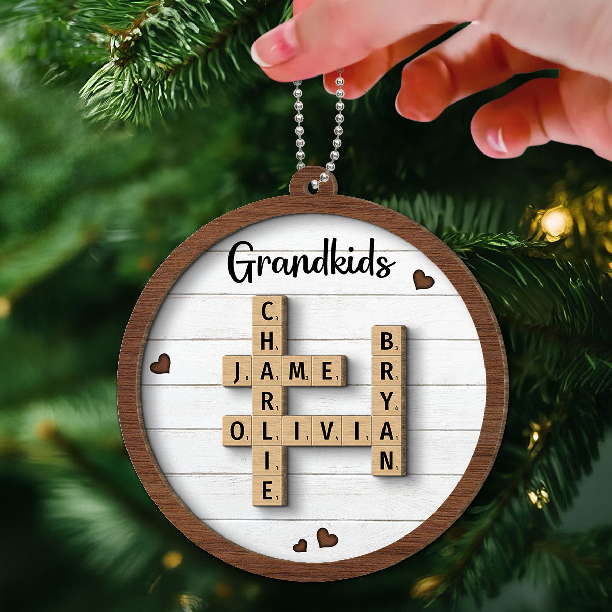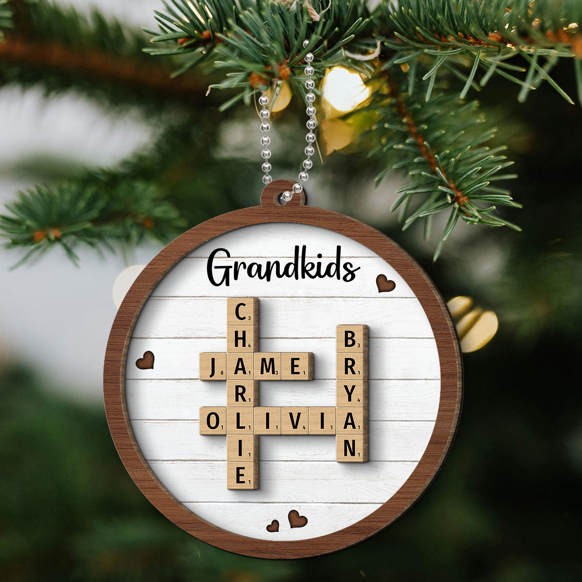 Grandkids Crossword Puzzle Art Personalized 2-Layer Wooden Ornament, Christmas Gift For Grandma, Gift For Mom