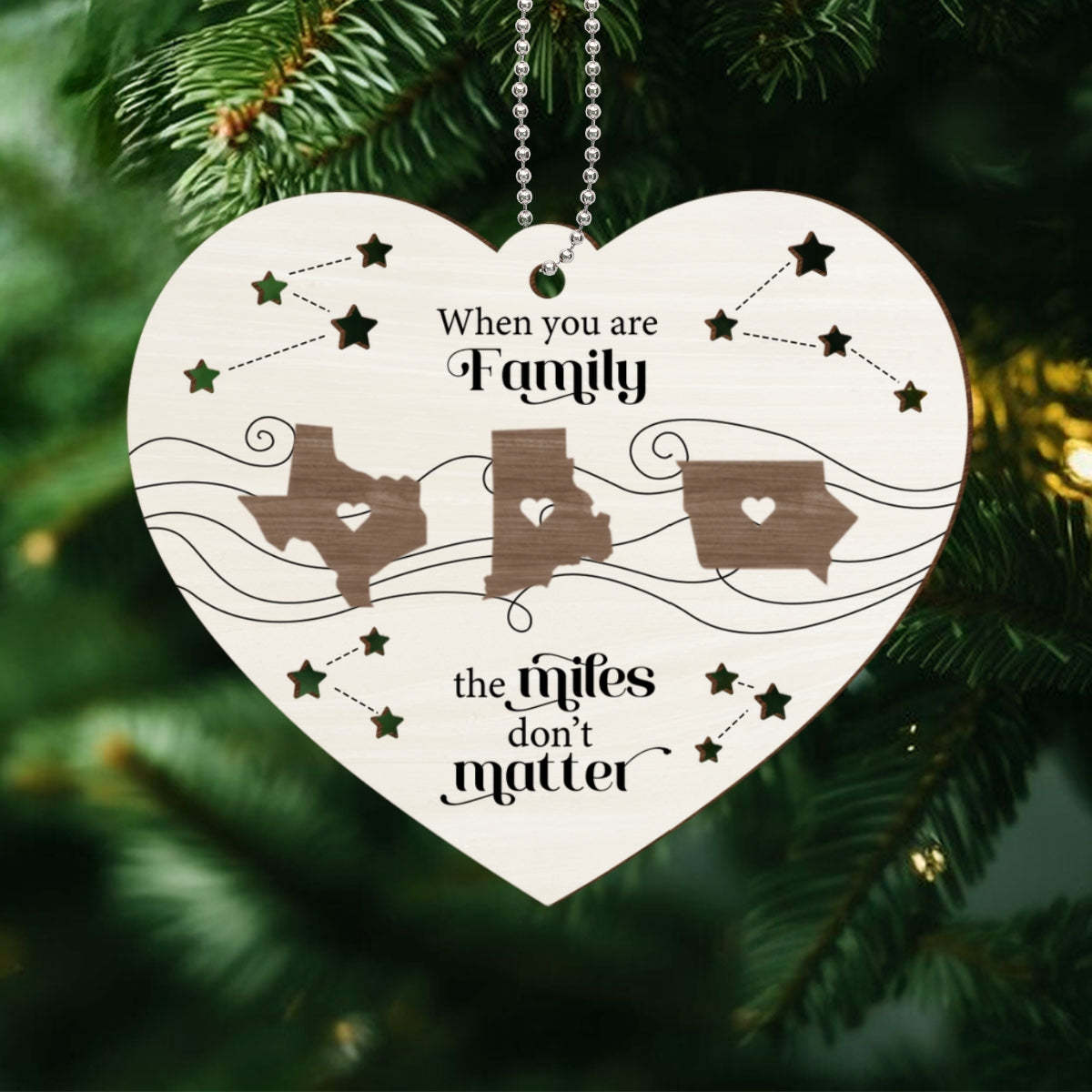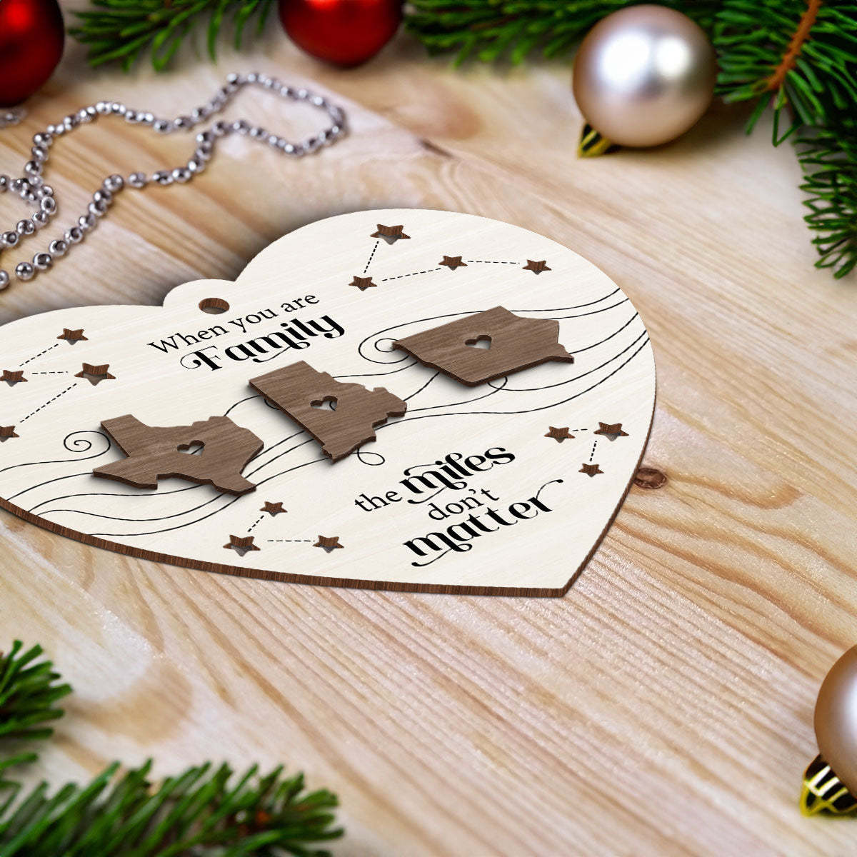 Long Distance Family Friends Siblings Sisters Besties Personalized 2-Layered Heart Shaped Wooden Ornament, Togetherness Christmas Gift