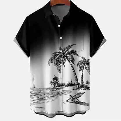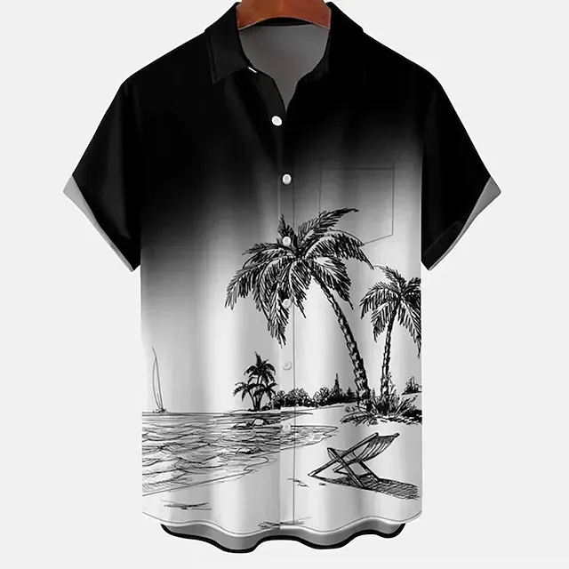 Men's Shirt Aloha Shirt Coconut Tree Graphic Prints Turndown Black 3D Print Outdoor Street Short Sleeves Button-Down Print Clothing Apparel Tropical Designer Casual Hawaiian