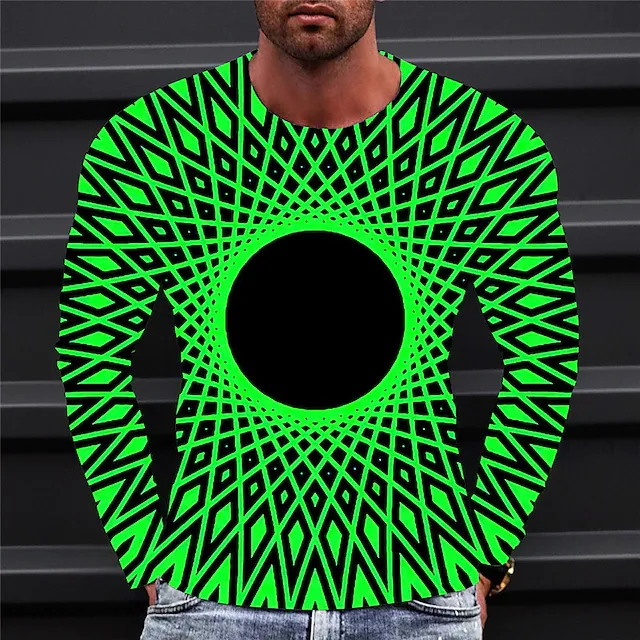 Men's T shirt Tee Graphic Prints Geometry Crew Neck Green Purple Yellow Orange Red 3D Print Outdoor Street Long Sleeve Print Clothing Apparel Basic Sports Designer Casual
