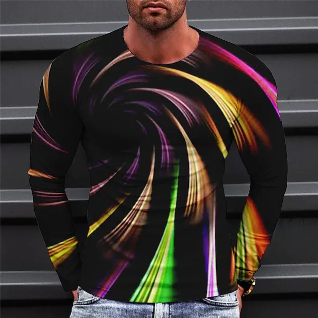Men's T shirt Tee Graphic Prints Spiral Stripe Crew Neck Green Blue Yellow 3D Print Outdoor Street Long Sleeve Print Clothing Apparel Basic Sports Designer Casual
