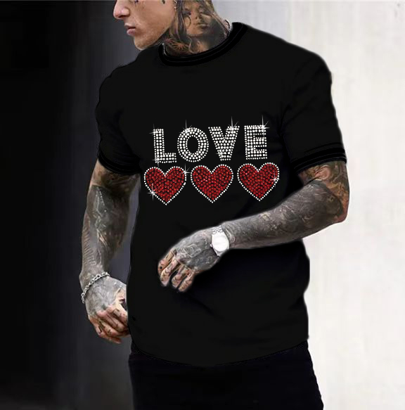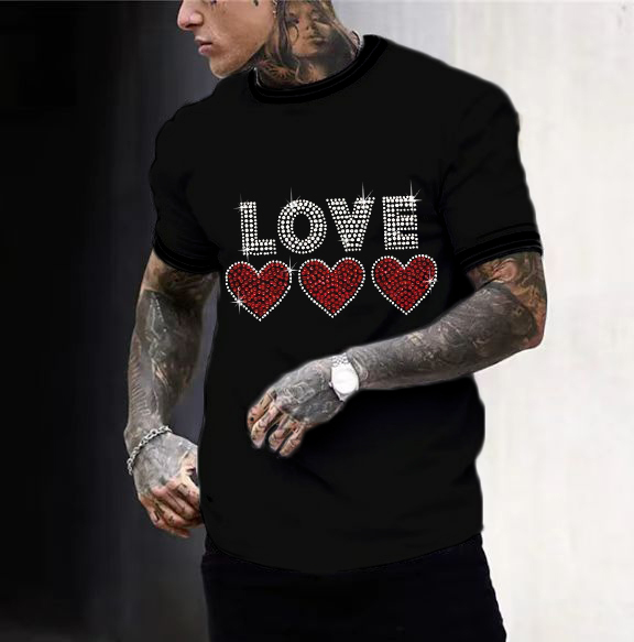 Men's T-shirt Tee Letter Love Splicing Heart Beads Crew Neck Cool Black 3D Print Outdoor Street Short Sleeve Print Clothing Apparel Basic Sports Designer Casual