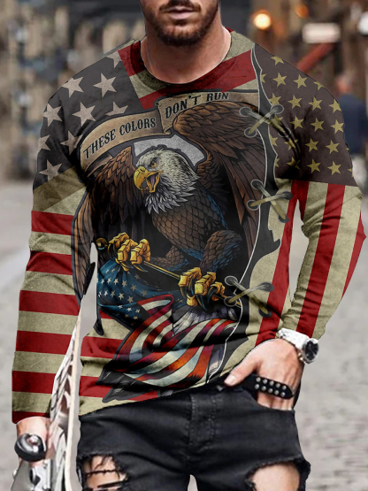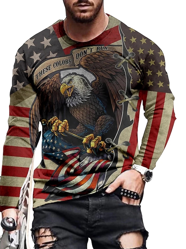 Men's T shirt Tee Shirt Tee Graphic Flag Eagle Crew Neck Blue Purple Red Gray Black 3D Print Plus Size Casual Daily Long Sleeve Print Clothing Apparel Basic Designer Slim Fit Big and Tall