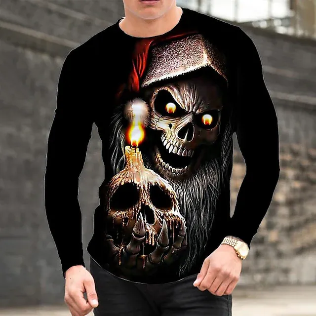 Men's T shirt Tee Skull Graphic Prints Crew Neck Black Blue Coffee 3D Print Outdoor Christmas Long Sleeve Print Clothing Apparel Basic Sports Designer Casual