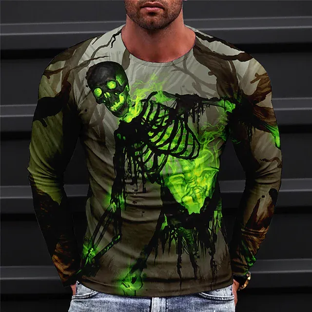 Men's T shirt Tee Skull Graphic Prints Skeleton Crew Neck Green Purple Yellow Gray 3D Print Outdoor Street Long Sleeve Print Clothing Apparel Basic Sports Designer Casual