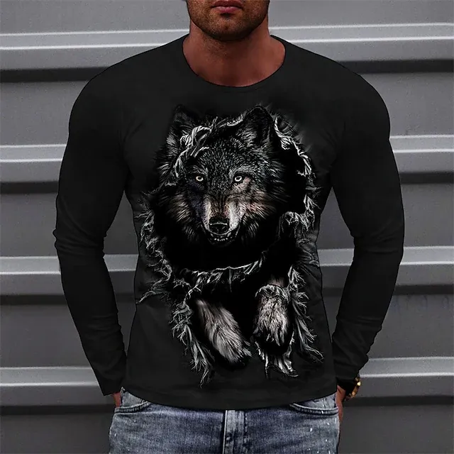 Men's T shirt Tee Wolf Graphic Prints Crew Neck Green Black Purple Red Brown 3D Print Outdoor Street Long Sleeve Print Clothing Apparel Basic Sports Designer Casual