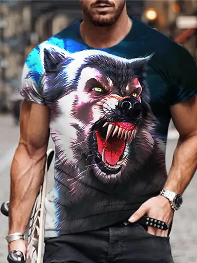 Men's Unisex T shirt Tee Animal Wolf Graphic Prints Crew Neck Blue 3D Print Outdoor Street Short Sleeve Print Clothing Apparel Sports Designer Casual Big and Tall / Summer / Summer