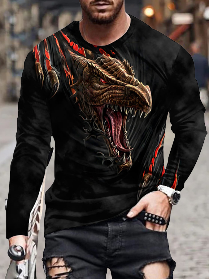 Men's Unisex T shirt Tee Dragon Graphic Prints Crew Neck Black 3D Print Daily Holiday Long Sleeve Print Clothing Apparel Designer Casual Big and Tall