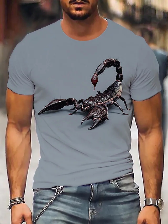 Men's Unisex T shirt Tee Shirt Tee Graphic Prints Scorpion Crew Neck Gray 3D Print Daily Holiday Short Sleeve Print Clothing Apparel Designer Casual Big and Tall / Summer / Summer