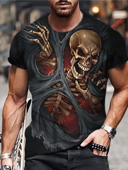 Men's Unisex T shirt Tee Skull Graphic Prints Crew Neck Black / Gray 3D Print Daily Holiday Short Sleeve Print Clothing Apparel Designer Casual Big and Tall / Summer / Summer
