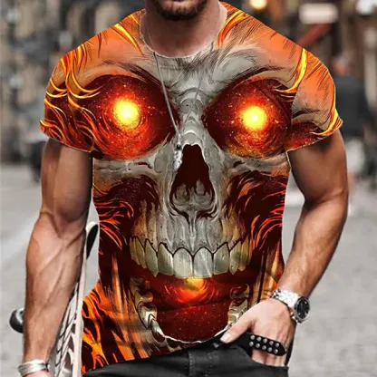 Men's Unisex T shirt Tee Skull Graphic Prints Crew Neck Green Blue Purple Pink Yellow 3D Print Outdoor Street Short Sleeve Print Clothing Apparel Sports Designer Casual Big and Tall / Summer / Summer