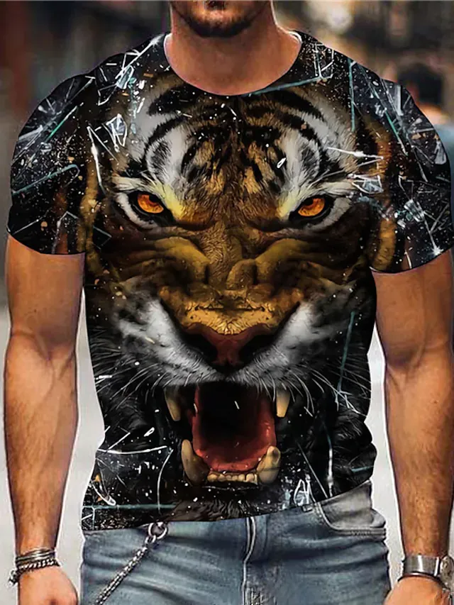 Men's Unisex T shirt Tee Tiger Graphic Prints Crew Neck Black 3D Print Outdoor Street Short Sleeve Print Clothing Apparel Sports Designer Casual Big and Tall / Summer / Summer