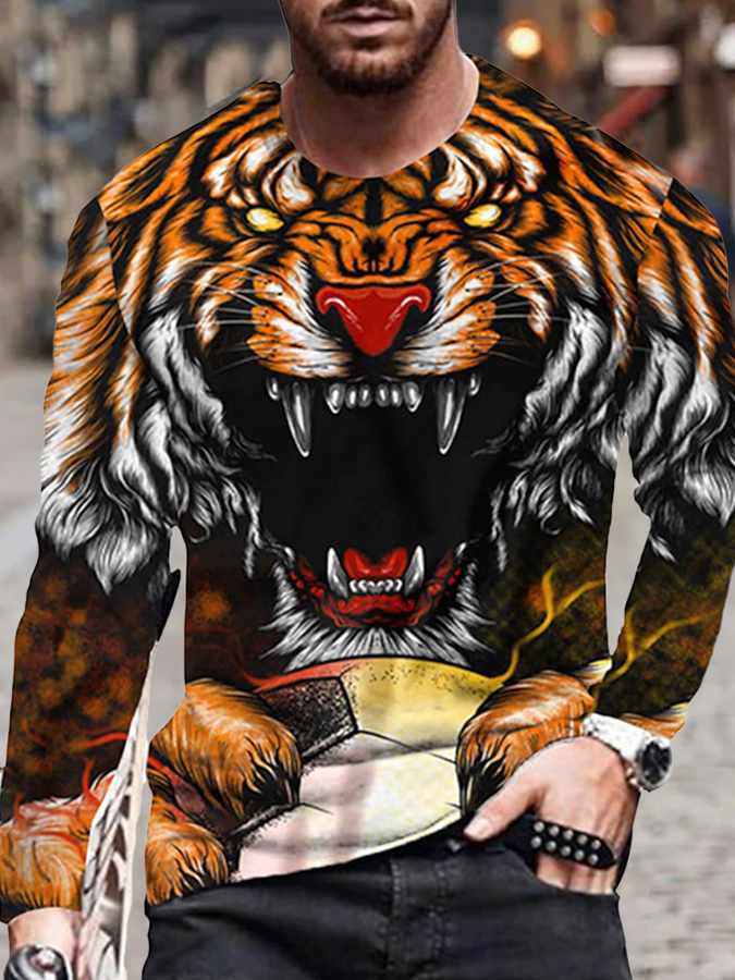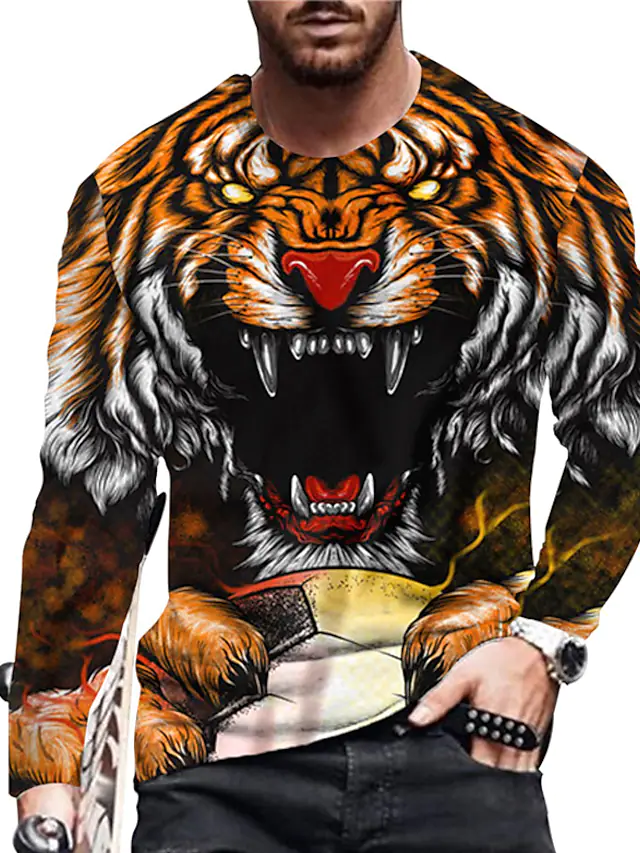 Men's Unisex T shirt Tee Tiger Graphic Prints Crew Neck Orange 3D Print Daily Holiday Long Sleeve Print Clothing Apparel Designer Casual Big and Tall