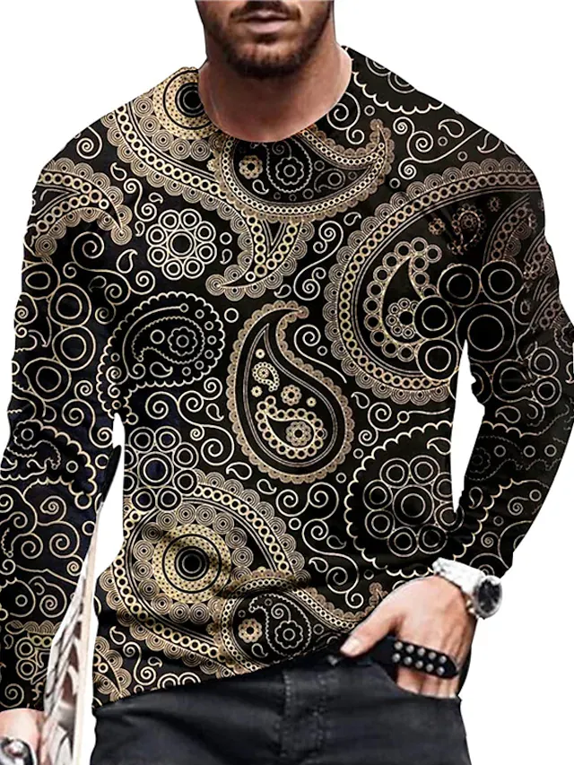 Men's Unisex T shirt Tee Tribal Graphic Prints Crew Neck Black 3D Print Daily Holiday Long Sleeve Print Clothing Apparel Designer Casual Big and Tall
