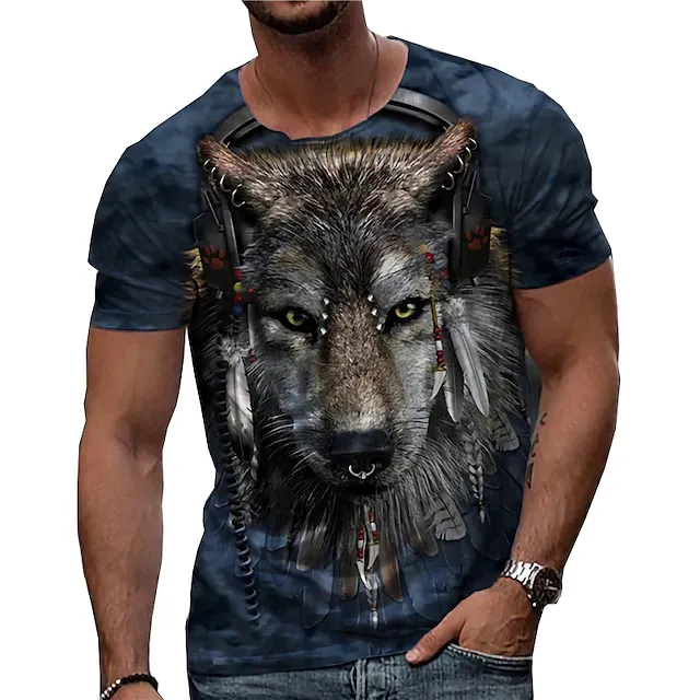 Men's Unisex T shirt Tee Wolf Graphic Prints Crew Neck Blue 3D Print Outdoor Street Short Sleeve Print Clothing Apparel Sports Designer Casual Big and Tall / Summer / Summer