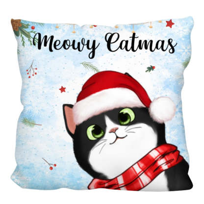 Meowy Catmas Cute Peeking Fluffy Cat Personalized Pillow