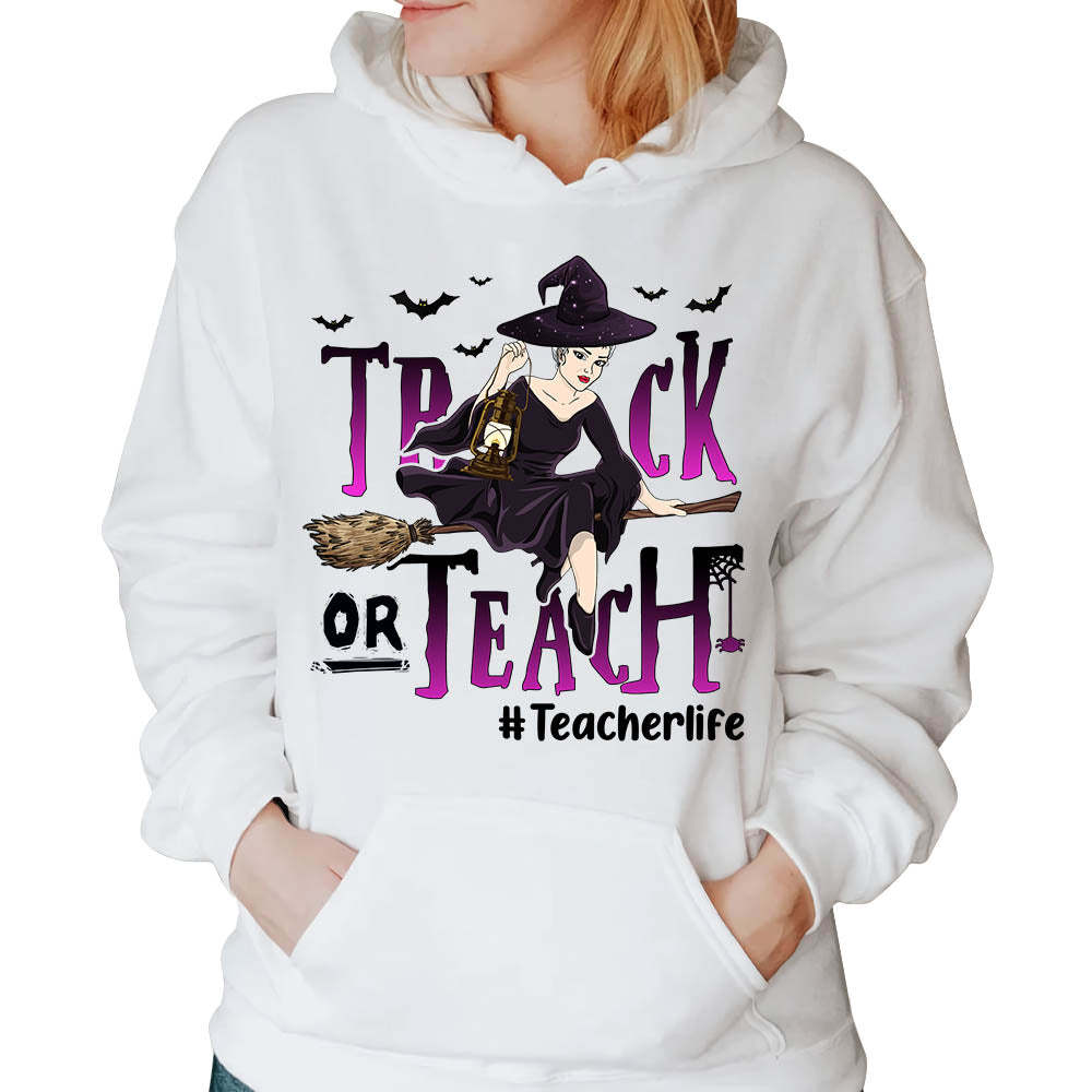 Trick Or Teach Teacherlife Hashtag Personalized Witch Shirts