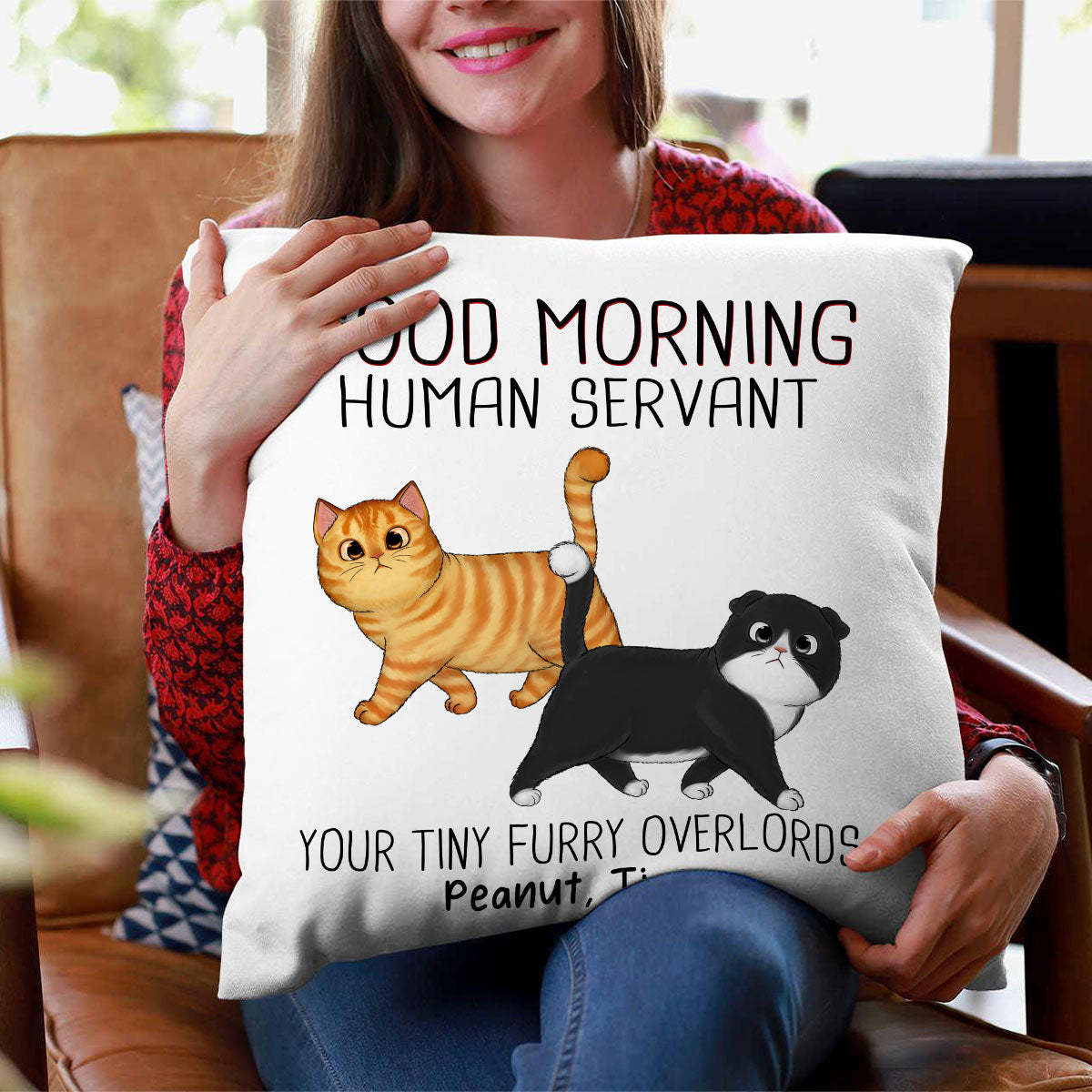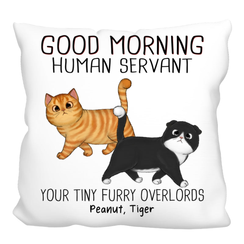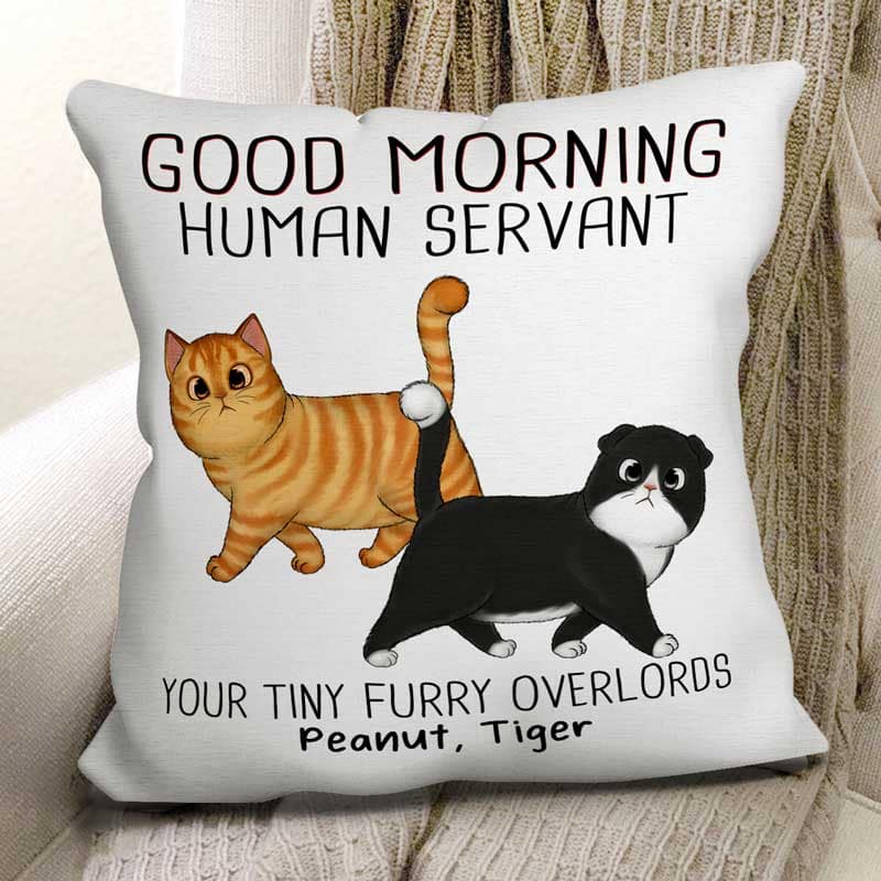 Walking Fluffy Cats Good Morning Cat Human Servant Personalized Pillow